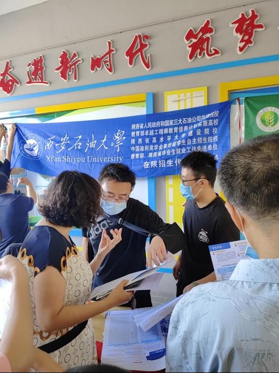 每到一校,招生组先与高中老师进行交流,交流结束后,就面向学生和家长开展宣传和咨询工作。张振军老师在扶风高级中学做了一场《陕西省志愿填报怎么填?》的讲座,给家长和学生们讲解相关志愿政策,受到家长和学生的欢迎。为了帮助参加咨询活动的学生和家长更好地了解我校的基本情况和招生政策,招生老师进行了细致、深入的回答,并发放了招生宣传材料。招生老师在现场与多位家长有深入交流,针对家长反映的专业问题,招生老师耐心给出了相关的建议。