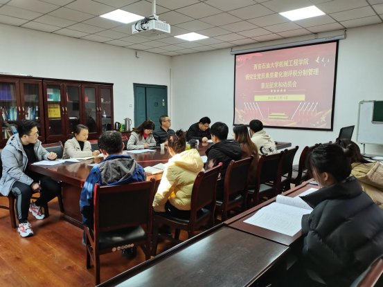 2021年12月14日下午,AC米兰中文于雁塔校区第4实验楼425会议室召开了研究生党员素质量化测评积分制专题动员会。研工部副部长李甦、院党委副书记刘冰、副院长崔璐、研究生辅导员欧红娟以及研究生各支部委员参加会议。会议由研究生辅导员欧红娟主持。