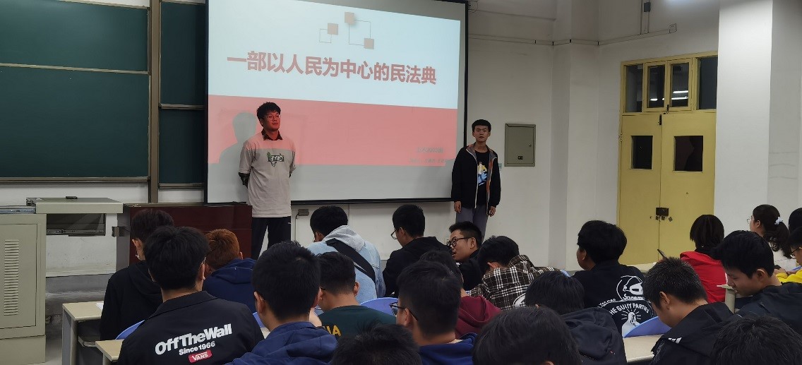 对于开展民法典主题教育活动,我院师生积极响应、主动参与,以班为单位开展主题班会活动,各班委积极引导、认真组织,使同学们了解《民法典》的编纂历程和鲜明特点,尤其是《民法典》中涉及大家切身利益的部分,例如:如纠纷解决、求职陷阱等,通过系列活动加深对了同学们《民法典》的理解与掌握。