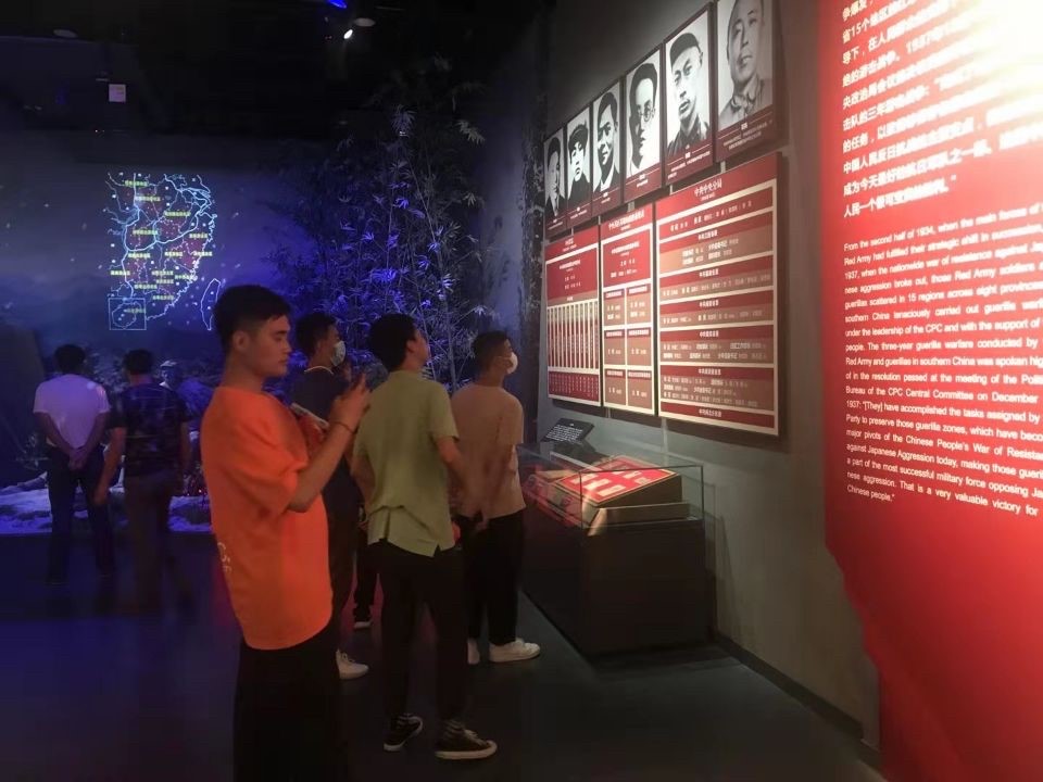 在讲解员的带领下,同学们徐徐地步入纪念馆内,参观学习了新四军的发展史主题陈列,展馆内一件件珍贵的革命历史文物,一张张革命英烈的照片,将大家引入到了那段艰苦奋斗、顽强拼搏的抗日战争岁月中去。馆内的许多壁画,形象直观地向大家展示了战争的激烈场景。战争是残酷的、无情的,它侵害的是一个个无辜的老百姓的生命,使人民生活在水深火热之中。为了人民的幸福生活,一代代共产党人、一辈辈革命先烈抛头颅、洒热血,前赴后继,无怨无悔。面对大无畏的英雄史诗,同学们纷纷表示:我们一定要铭记历史,珍惜今天来之不易的美好生活,反对战争,维护和平。江山就是人民,人民就是江山,共产党打江山、守江山,守的就是人民的心。立足百年征程,我们要认认真真开展党史学习,不忘党的初心和使命,做到学史明理、学史增信、学史崇德、学史力行,学党史、悟思想、办实事、开新局,不断增强“四个意识”,坚定“四个自信”,做到“两个维护”,听党话,感党恩,跟党走。