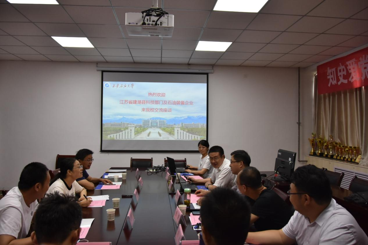 7月10日下午,江苏省建湖县科技局副局长丁庆梅、江苏铭星供水设备有限公司副总经理周宗刚、建湖县永维阀门钻件有限公司副总经理周德仲、建湖县近湖街道经济发展局科技科科长周玥等一行4人来我校雁塔校区4号实验楼425会议室交流座谈,并签署产学研合作协议。校党政办公室主任赵健,AC米兰中文党委书记蔡建文、院长窦益华等学院党政领导及教授代表参加座谈,会议由蔡建文书记主持。