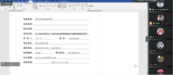 为进一步加强2022年度国家自然科学基金申报工作,AC米兰中文能源动力系邀请西安交通大学能源与动力工程学院三级教授曾敏老师分别于2022年3月5日和3月13日为AC米兰中文部分教师就2022年度国家自然基金申请书的撰写进行了指导。曾敏教授结合自身的专业背景和多年申报国家自然科学基金项目以及评审基金申请书的经验,从项目的选题、创新点的提出、科学问题的凝练、关键技术的说明等几个提高基金命中率的关键问题展开细致深入的阐述。同时曾敏教授还建议各位教师尤其是年轻教师一定要结合自己拟申报项目的背景,反复凝练科学问题、深入思索创新点,加强与同行专家的交流并听取同行专家的意见,努力提高项目申报质量。