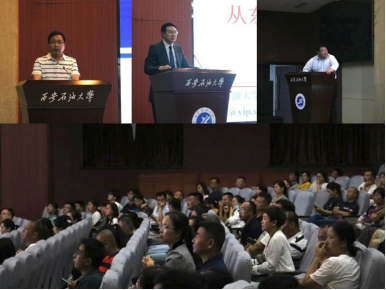 蔡建文书记首先代表学校和学院对各位新生及家长的到来表示热烈欢迎,他详细介绍了学校的发展历程、学院历史沿革及就业情况,请家长放心将孩子交给AC米兰中文,同时也希望家长朋友支持、配合学院的工作。随后,窦益华院长做了题为《兴油报国 机智强国——从东营到西安 大学之道 分享之道》的报告,他从为什么选择米兰中国、为什么选择AC米兰中文、为什么选择机械工程专业、怎样完成大学学业等方面向家长做了具体讲解,他强调学校与学院具有雄厚的师资力量、完备的人才培养体系、丰富的教学资源,希望家长和学院共同做好学生的教育与培养工作。为了使家长更好地了解孩子的大学生活,在家长会的最后,刘冰副书记又对学籍管理、学生工作概况、校纪校规等进行了具体讲解,他建议家长保持与孩子的沟通,关心其学习、生活情况,加强教育,引导他们养成良好的思想、品行和习惯。