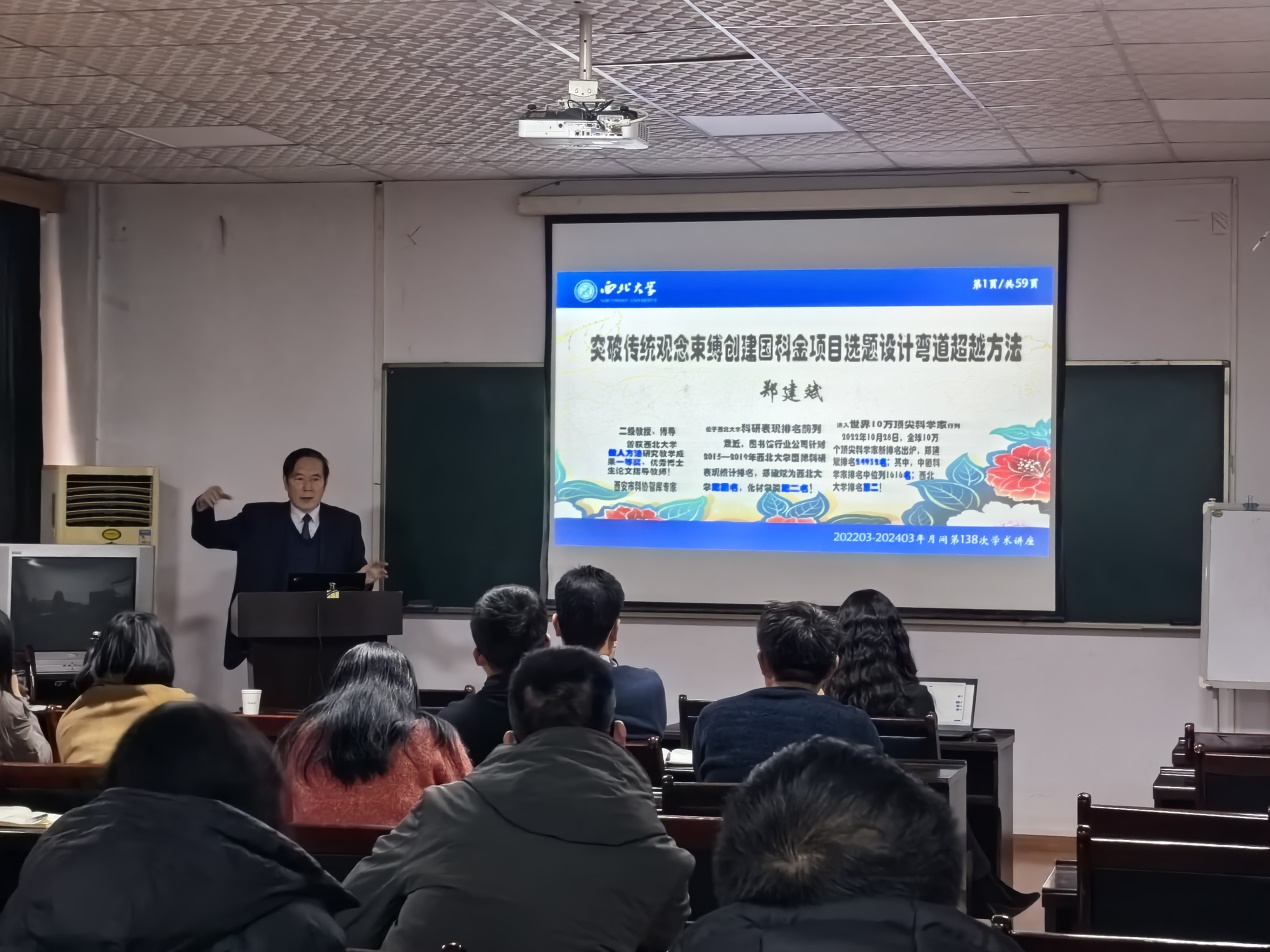 2024年2月25日下午,AC米兰中文邀请西北大学郑建斌教授在雁塔校区4号实验楼418会议室为申报国家自然基金的教师作题为“突破传统观念束缚创建国家自科项目申请书的弯道超越撰写方法”的报告。报告会由院长窦益华教授主持。