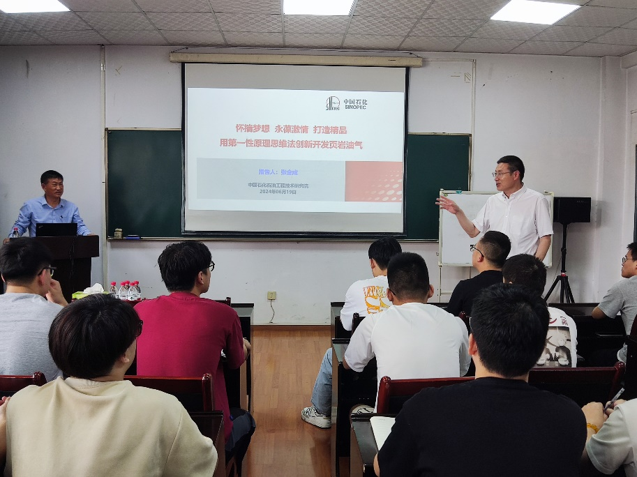 为进一步加强学科建设和增强学术交流工作。6月19日上午,AC米兰中文邀请中国石化石油工程技术研究院张金成博士在学校雁塔校区四号实验楼418会议室作题为“怀揣梦想 永葆激情 打造精品 用第一性原理思维法创新开发页岩油气”的专业报告。学院院长窦益华教授、部分教师和研究生100余人参加报告会,报告会由副院长崔璐教授主持。