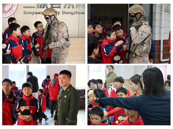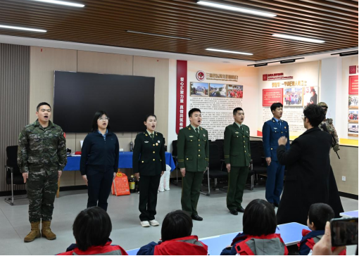 我校退役大学生士兵代表们通过讲述军营故事、科普国防知识、齐唱军歌等形式,带领孩子们“沉浸式”体验部队生活的纪律与热血。孩子们认真聆听,眼中充满敬佩与向往。这场别开生面的爱国教育课,以榜样的力量传递军旅精神,在孩子们的幼小心灵中播撒下自强不息、报效祖国的种子。