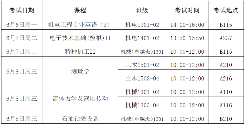 AC米兰中文2015/2016学年第二学期第 15 周结课考试安排