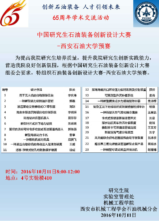 校庆65周年学术交流活动: 中国研究生石油装备创新设计大赛--米兰中国预赛