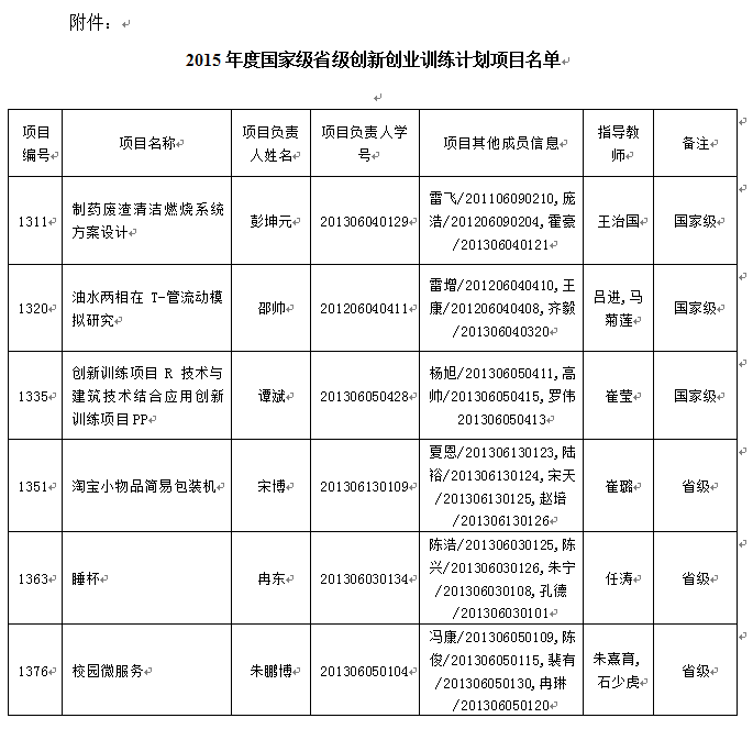 2015年立项研究的国家级和省级大学生创新创业训练计划项目。(见附件)
