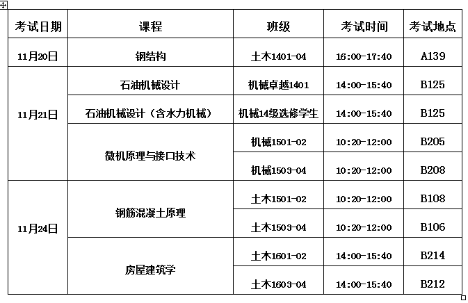2017/2018学年第一学期第 12 周结课考试安排