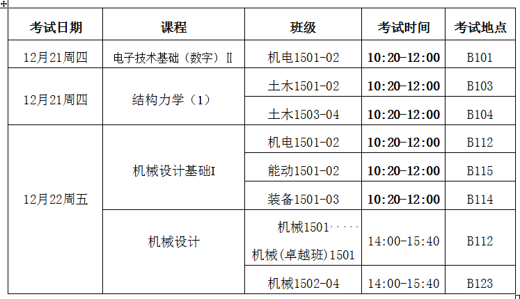 2017/2018学年第一学期第 16 周结课考试安排