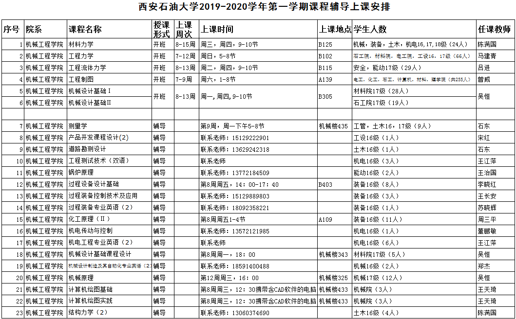 AC米兰中文2019-2020学年第一学期重学辅导上课安排