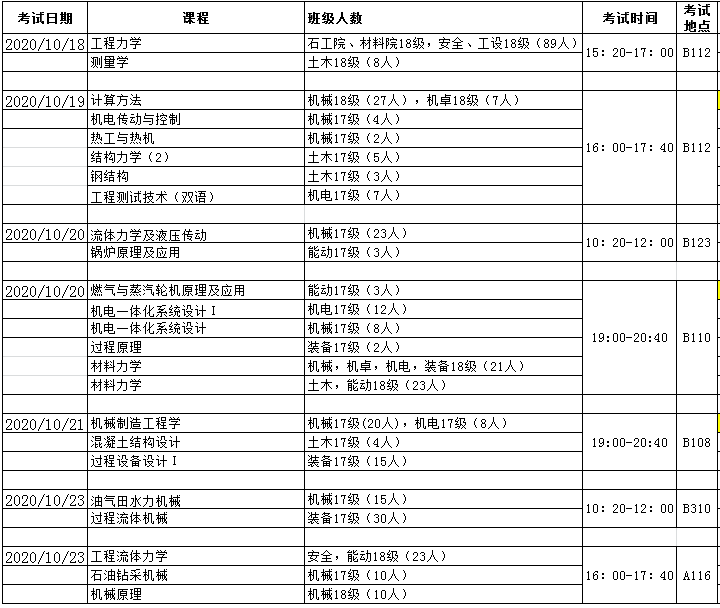 2019-2020第二学期机械院专业课补考安排