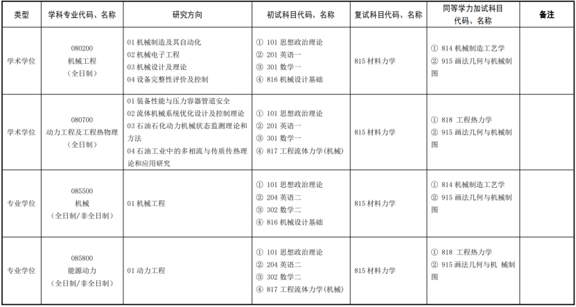 学院开设机械设计制造及其自动化、机械电子工程、过程装备与控制工程、能源与动力工程、工业设计、土木工程等6个本科专业,其中,机械设计制造及其自动化为国家一流专业、教育部卓越工程师培养计划专业、国家级特色专业、国家卓越工程师计划专业、国家专业综合改革试点专业、陕西省一流专业、陕西省特色专业、陕西省名牌专业;过程装备与控制工程为国家一流专业、陕西省一流专业、陕西省特色专业、陕西省名牌专业;机械电子工程为陕西省一流专业。学院现有机械工程、动力工程及工程热物理2个一级硕士授权学科,有机械领域、能源动力领域、土木水利专业硕士授权资格,其中,机械工程学科为陕西省优势学科。