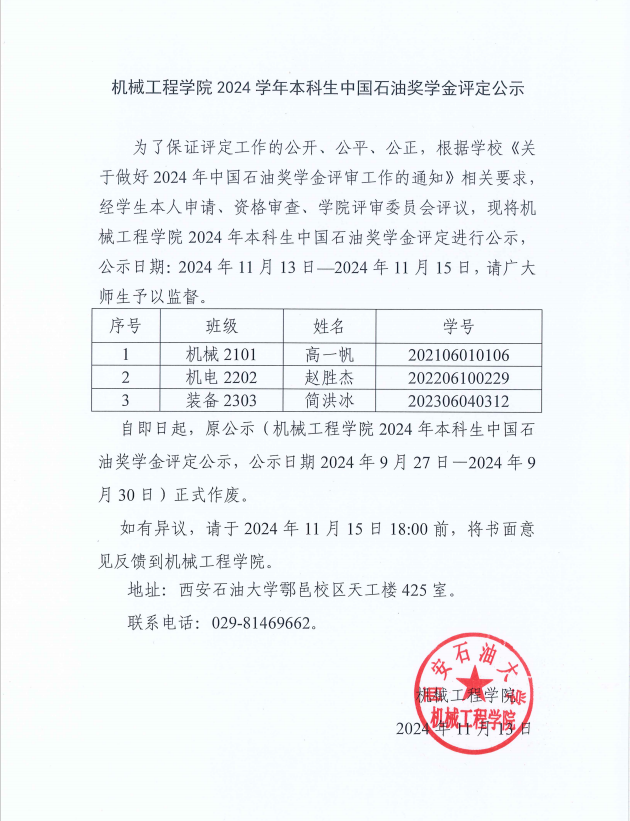 AC米兰中文2024学年本科生中国石油奖学金评定公示