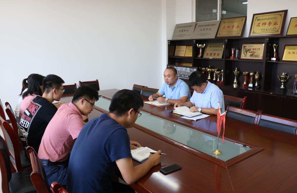 最后,学管办主任文爱国对开学初期各项学生工作事宜进行具体安排,包括办公室物品清理、迎新工作安排、人员变动资料交接、安全问题自纠自查、开学初期学生思想状况排查等工作,其中主要对2019级本科生及研究生迎新工作进行了人员安排和周密部署,同时他还提到,各年级要充分发挥党员示范岗的先锋作用,使迎新工作各个环节整齐化、统一化,每项事务保质保量完成。