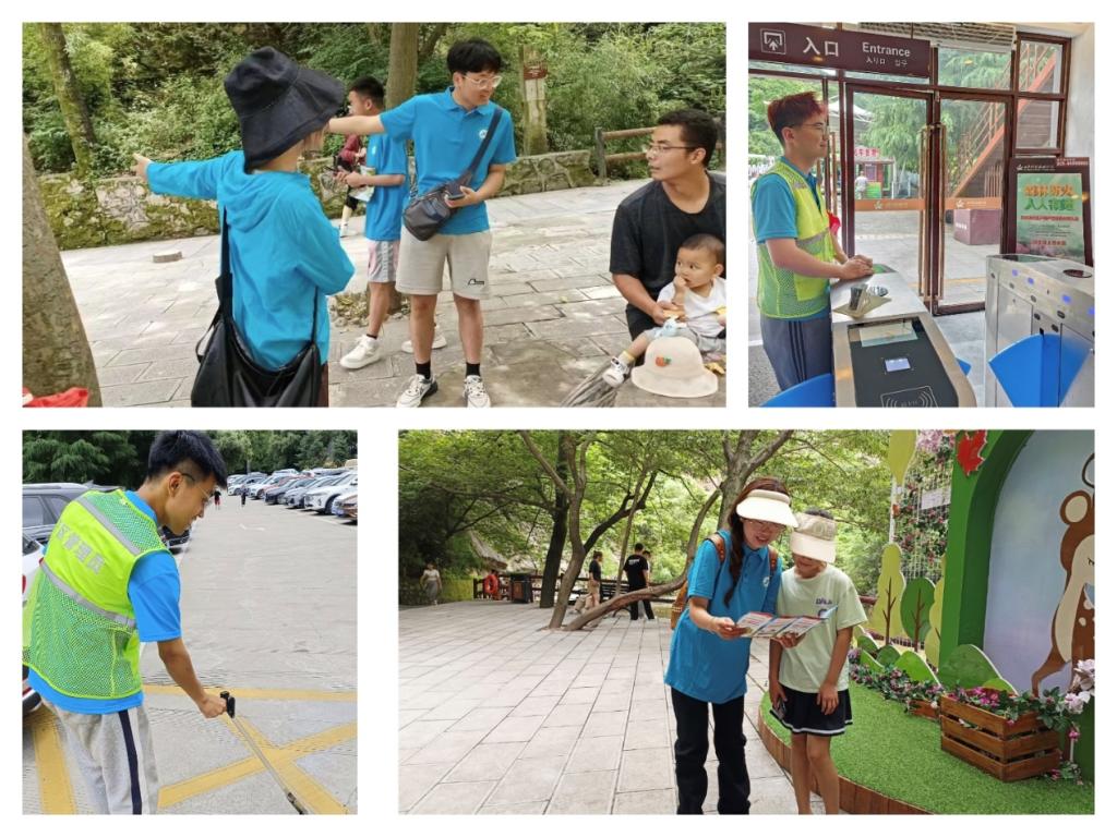 本次实践活动形式多样,实践团通过问卷调查和实地调查两部分,实践团部分同学负责在太平国家森林公园景区进行水质取样和记录景区环境;另一部分同学对游客进行采访,监督并及时制止游客乱扔垃圾的行为,为游客小朋友宣传生态环保理念、森林防火知识等相关内容。
