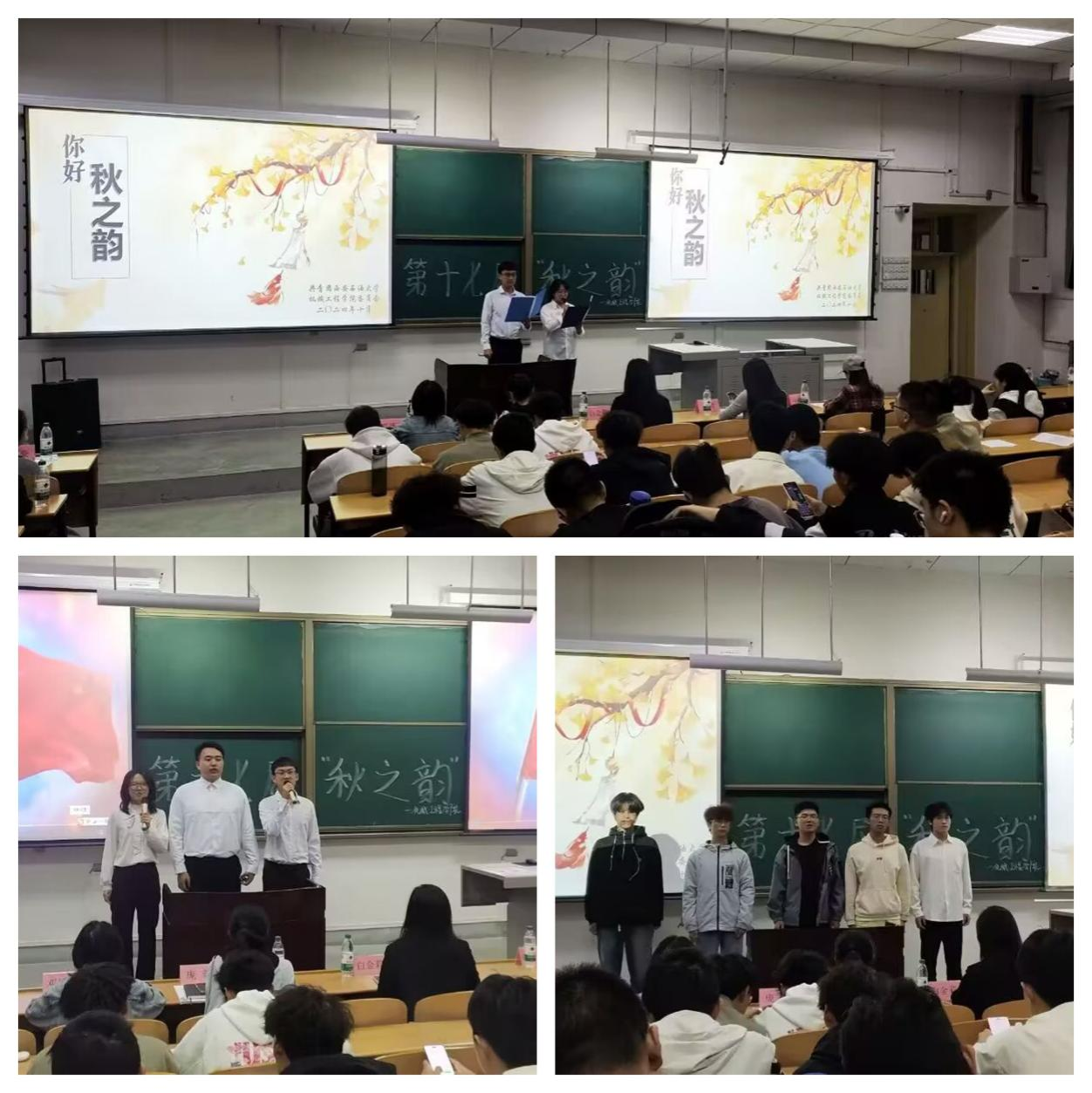 为构建书香校园,提升学生审美素养,展示其艺术才华及精神面貌,真正实现以美育人、以文化人,10月28日晚,AC米兰中文团委、学生会于博览楼A234教室举办第十七届 “秋之韵”诗文配乐朗诵比赛。院团委书记、学工办主任王璟,2023级辅导员庞蓉、2024级辅导员白金莉及2024级全体学生参加。