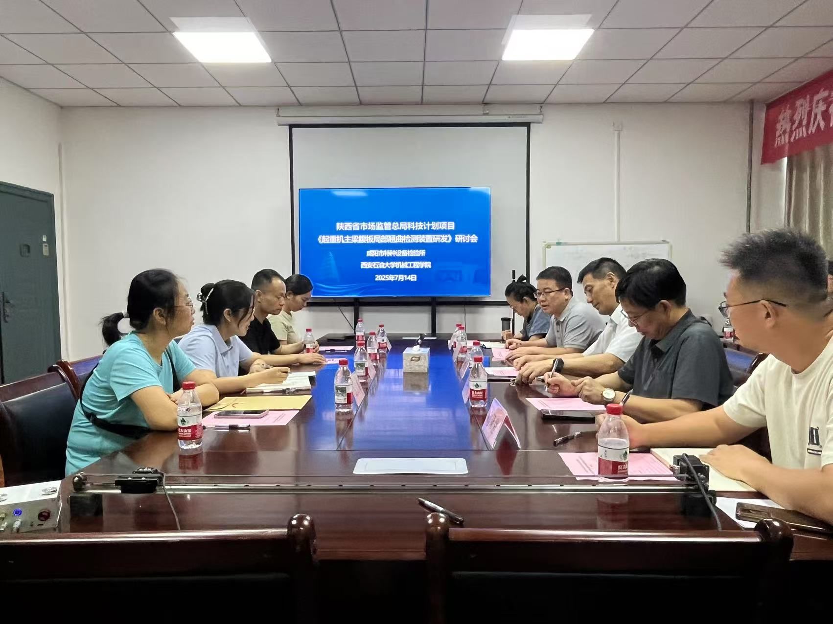 7月14日下午,咸阳市特种设备检验所副所长杨敏一行4人来访我院调研,并就联合申报的陕西省市场监管总局科技计划项目“起重机主梁腹板局部翘曲检测装置研发”开展技术交流。学院党委书记孟开元、新能源学院副院长王治国和我院部分教师代表参会,会议由学院机电工程系副主任贺雨田(项目合作负责人)主持。