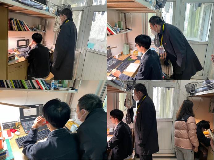 在学生宿舍,窦院长认真查看每个专业、每个年级学生的线上听课情况,了解网络平台授课效果,表扬同学们的刻苦认真态度。