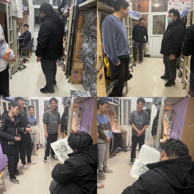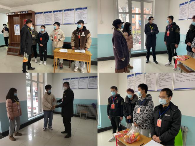 1月7日上午,AC米兰中文院长窦益华、党委副书记刘冰及全体辅导员深入鄠邑校区学生宿舍巡视线上教学情况并看望慰问防疫值班党员志愿者。