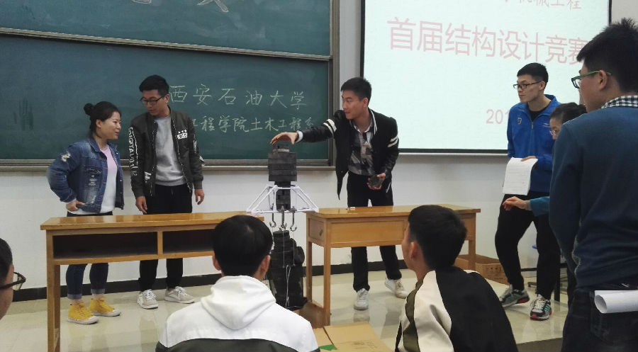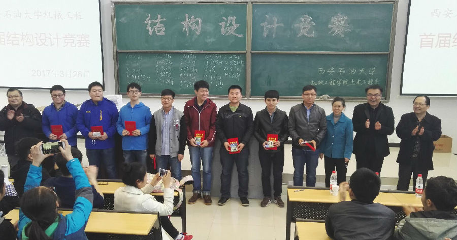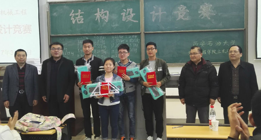 据悉,本次比赛自2016年12月份启动,刘振华教授等专业老师对各组进行悉心指导,各组同学经过精心设计,反复试验后,最终完成了本次比赛。结构设计竞赛旨在激发大学生的创新意识,培养大学生实践动手能力与合作精神,提高大学生的综合素质,丰富校园学术氛围。