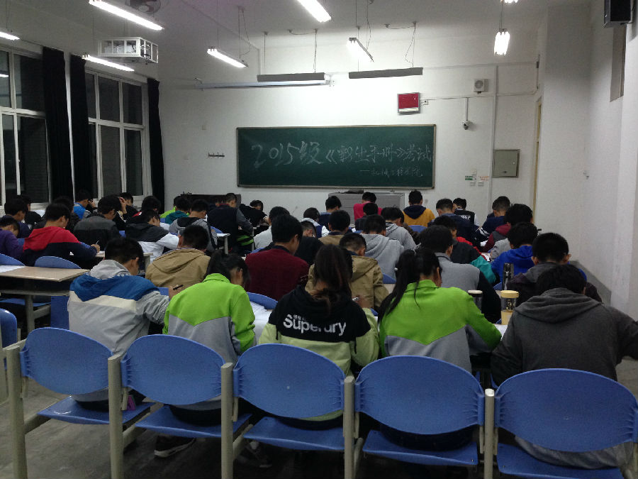“十一”假期伊始,10月8日晚,AC米兰中文辅导员邵小康、乔晓老师,在学院团委学生会的协助下,组织2015级新生在A区学院自习室9室同步,举办“入学第一考”——新生手册入学考试。